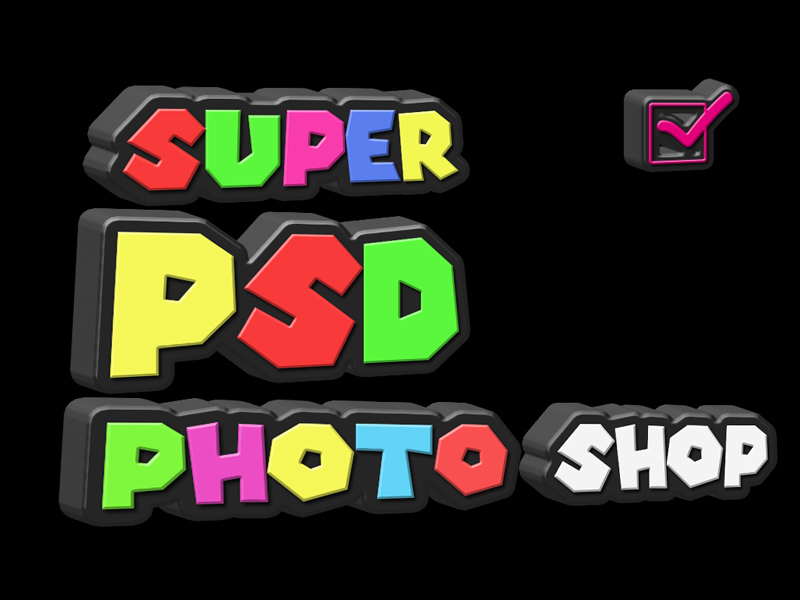 Learn how to create a 3D plastic text in Photoshop inspired by the classic Super Mario Video Game; First you have to download the super mario font and learn how to install font in Photoshop. Write a simple text; I will use 3 text layers writing SUPER PSD DUDE LAND; you will see that you will have to create the effect for each text layer individually.