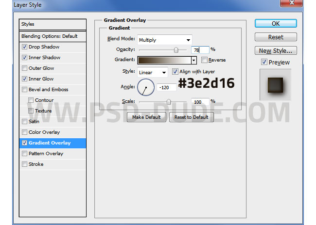 - Go to Image > Adjustments > Gradient Map and set the first color #452509 and the second one #e07e00. Blend mode is set to Color with opacity 50%.