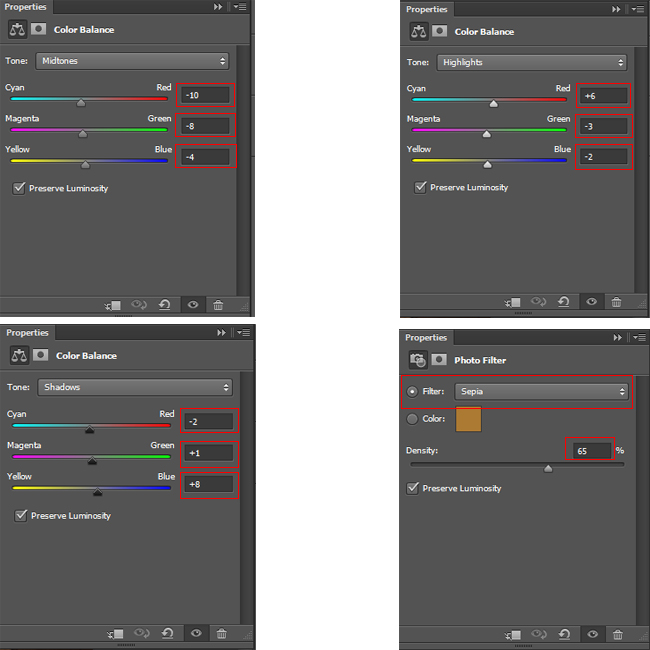 For the final touches you can use the High Pass filter to sharpen the image. Adding a Gradient Map, blend mode Color and opacity around 30% , you can easily change the color tones of your image.