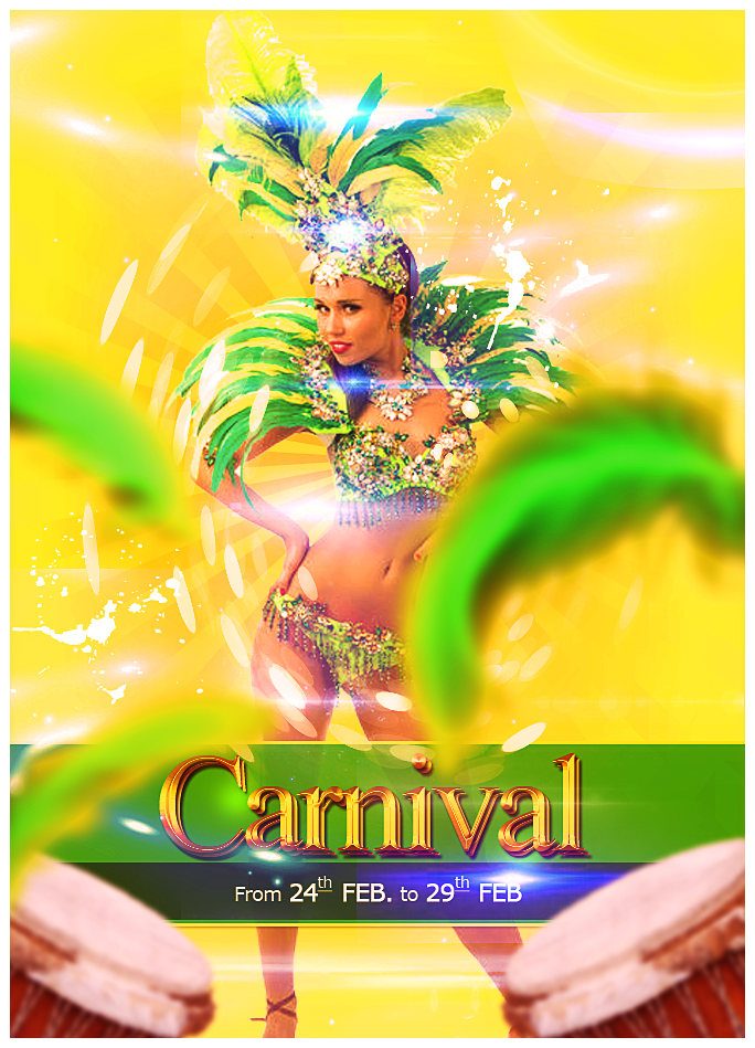 Duplicate the gold text effect and move the original layer a few pixels down and right to create a 3D effect. I also added some other details about the carnival date.