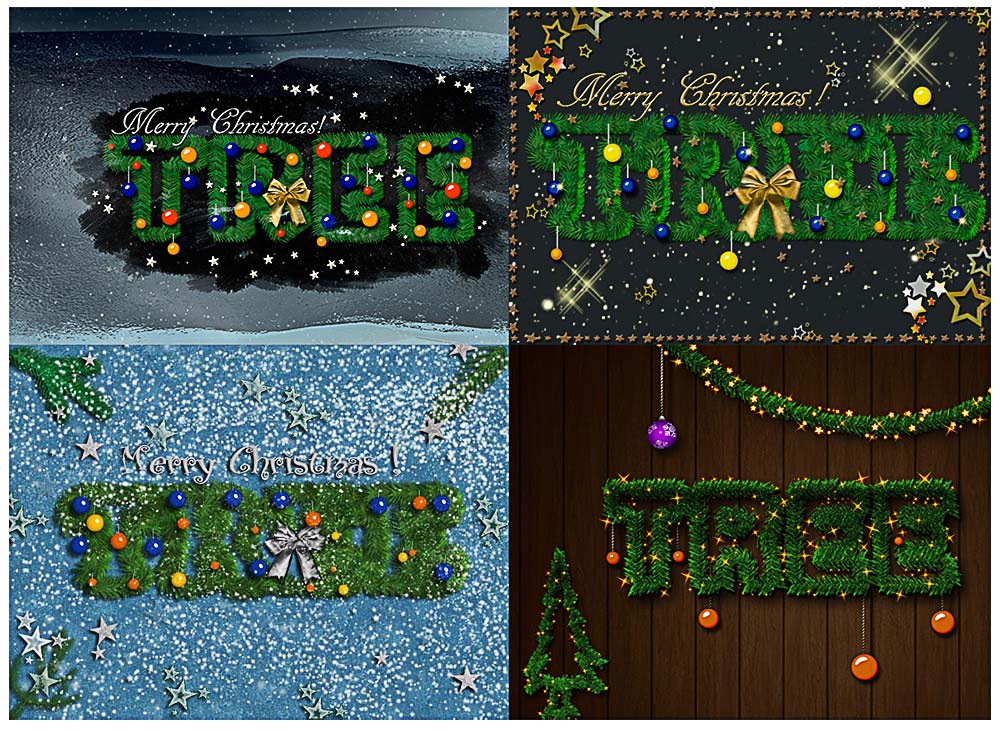 You can create unique Christmas effects using this one of a kind premium Photoshop action set. The pack contains 2 Photoshop actions that will allow you to create realistic Christmas tree effects out of any text, shape, raster or hand drawn path. It comes included with a fully detailed PSD Help File for you to obtain the best results.
