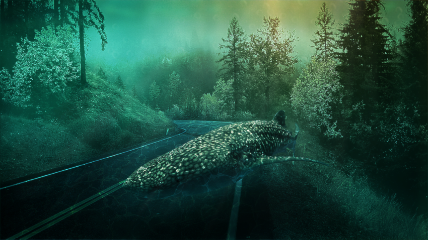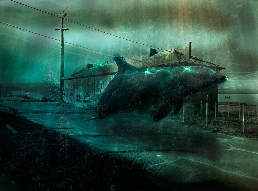 Open the water reflection image we used on step 06. Create a new layer named Reflection Whale and set it over the Main Whale layer. Transform the reflections to black and white. (Ctrl + shift + u). Erase all except for what covers the whale. Set the blending mode to Overlay Now we have the same effect we added to the ground.