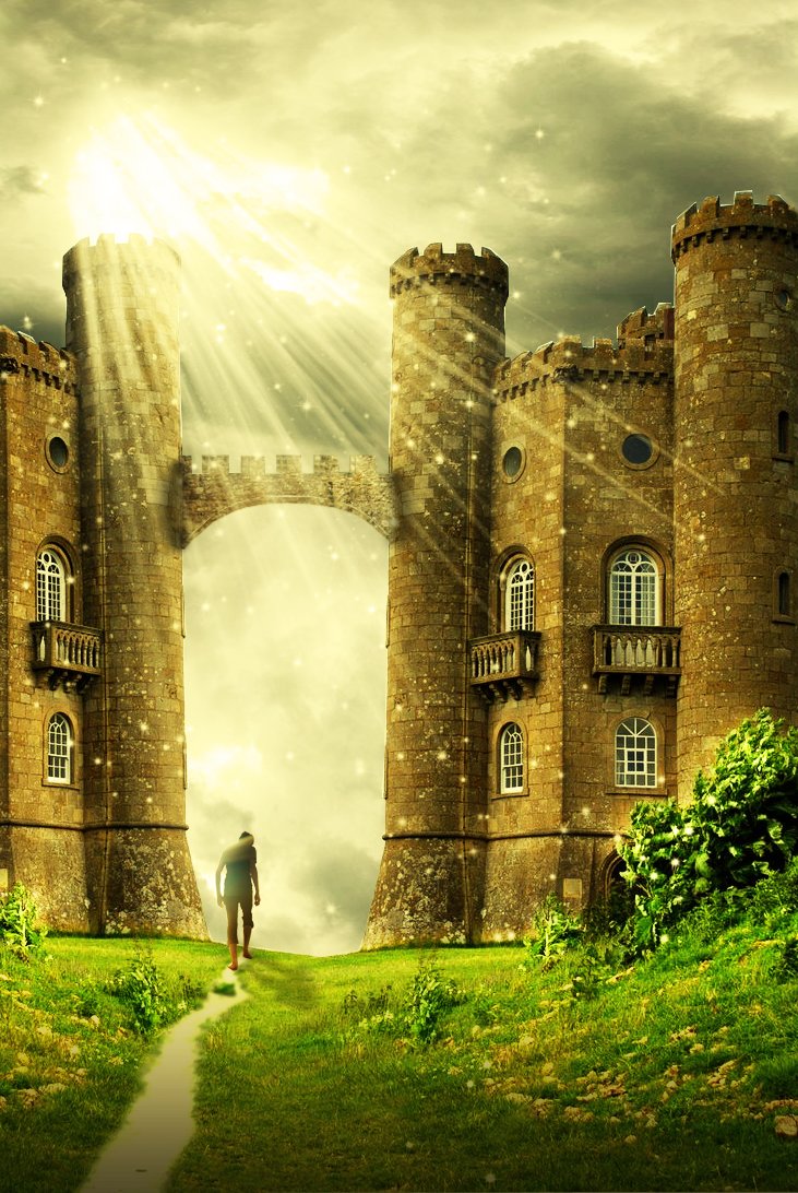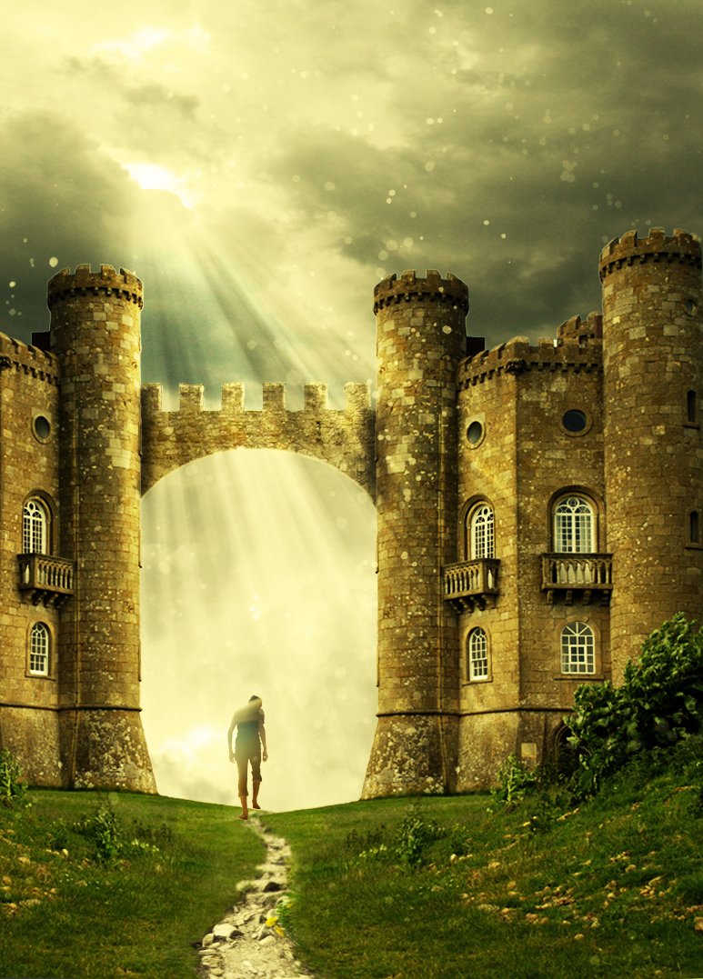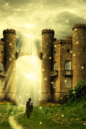 Here is a beautiful medieval castle made in Photoshop by artist kolobok555 (http://www.photoshop-master.ru/users.php?id=289680)