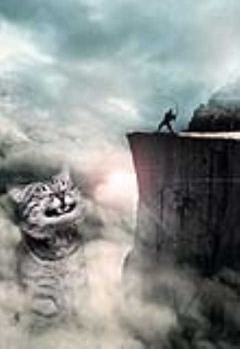 Press Ctrl+alt+t to resize the man layer and put it on the cliff as shown below