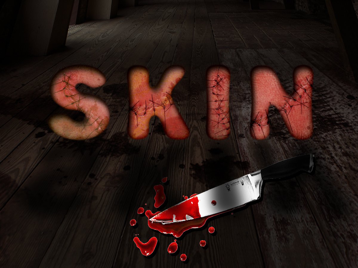 Let's take a quick look at the grunge horror text that we are going to create in Photoshop using blood textures, stitched skin stock images, adjustment layers and so on. You can create the stitched effect using stitch and scar brushes instead of using real images.