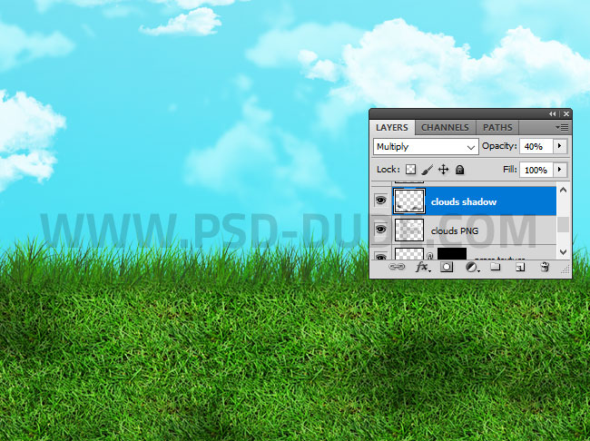 Duplicate the Clouds PNG and call the layer Clouds Shadow.