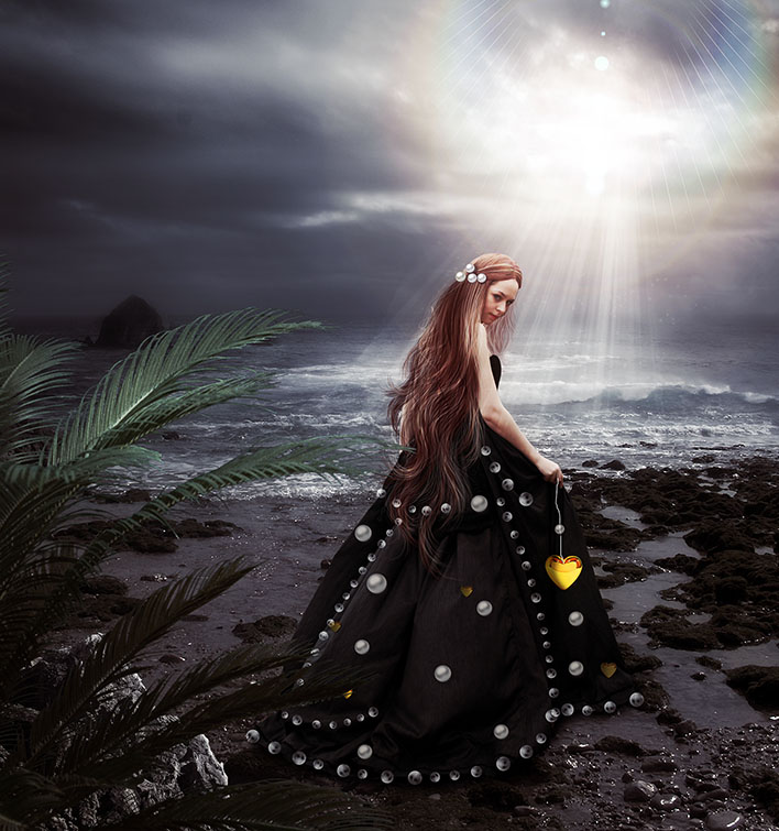 In a similar way I have added some pearls in the girl hair like in the image. Also I have made a custom made pearl brush that I have created using the pearl image. Learn how to create your own brushes with scatter effects by reading this Photoshop Brush Tutorials Guide for Beginners