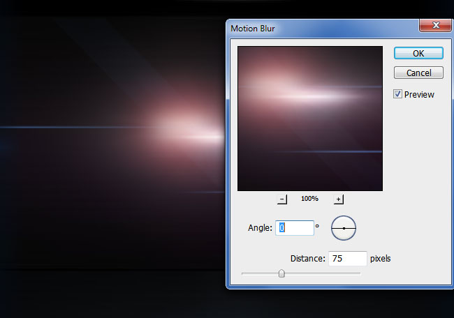 In a new layer above all the other layers, including the text layers, add some lens flare textures. That way you will add interesting colorful light effects to your image. Simply pick a optical flare image that you like and use the Motion Blur(Filter>Blur menu) to create a soft blur look.