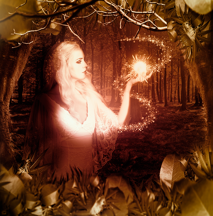 Create a new layer and set the blend mode to Overlay. Use the Brush Tool and a soft round brush, color white and different opacity levels to lighten some areas (on the face, hands, trees) like shown in the preview.