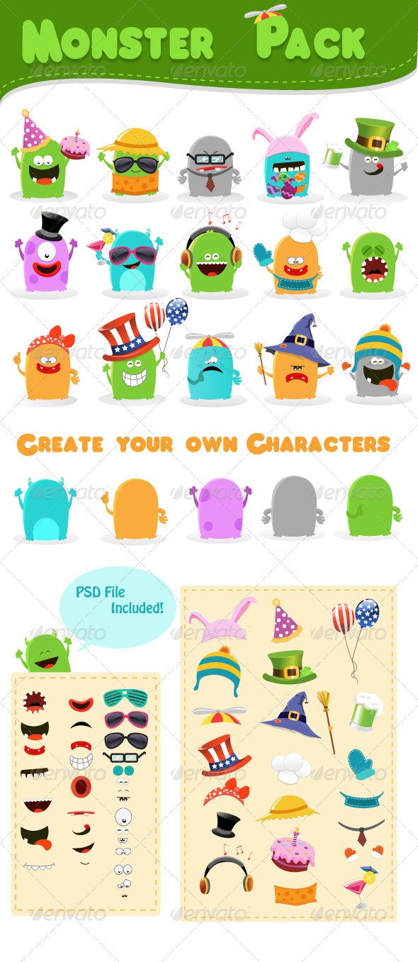 Monster Cartoon Character Creation Kit PSD - Free