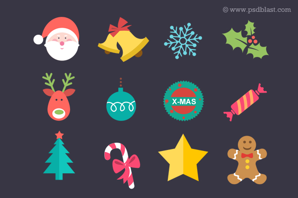 12 Flat Christmas Icon set for add a Christmas touch to your website design, graphic material or print material, Fully scalable & editable Christmas design elements PSD.