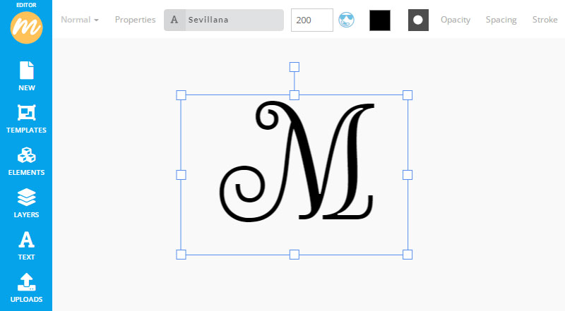 Go to the Text menu and add a text. To make a m monogram logo write an uppercase M letter. To make a s monogram logo write an uppercase S letter.
