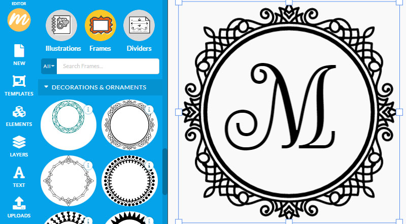 - Or, go to Elements > Frames > Decorations and Ornaments and there you have lots of monogram frames to create monogram logo free.