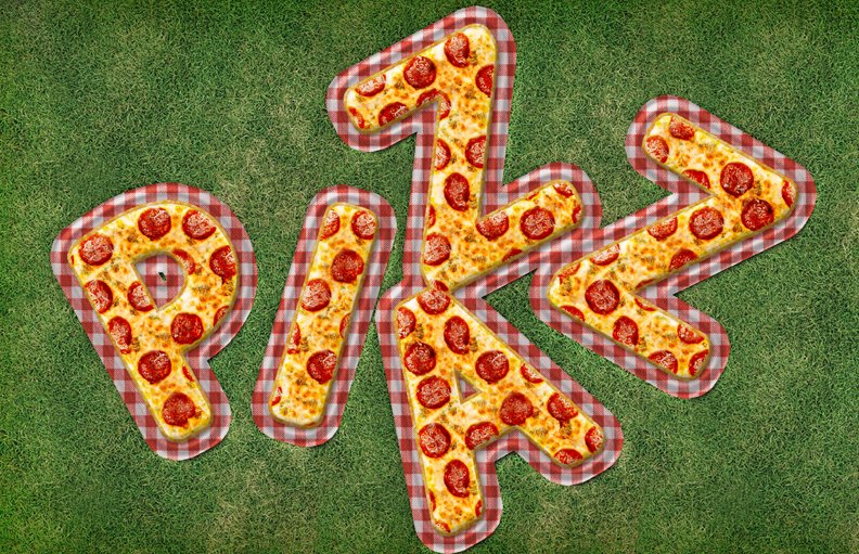 If you don't have Photoshop, you can try this creative pizza letters from MockoFun. Use the pizza text online.