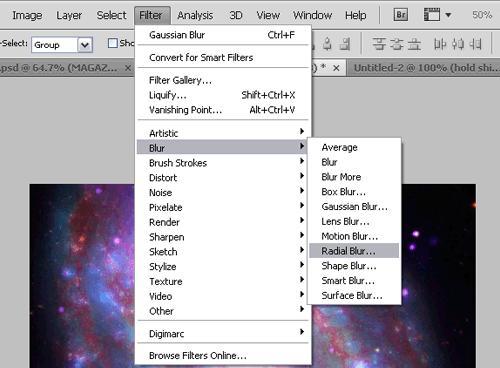 Space Motion Effect in Photoshop Using The Radial Zoom Blur Filter