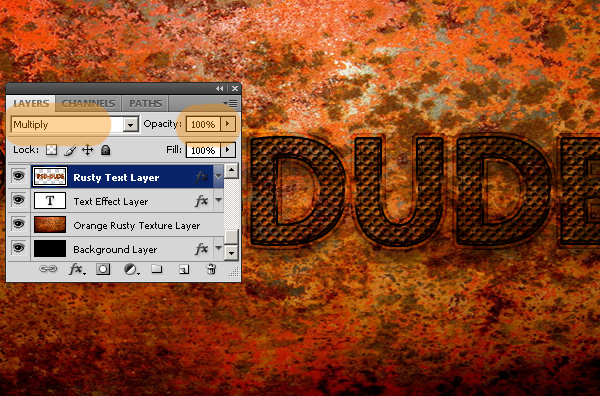 For the final touch reduce the opacity of the Orange Rusty Texture Layer to 20% and change the Background Color to #28170c.