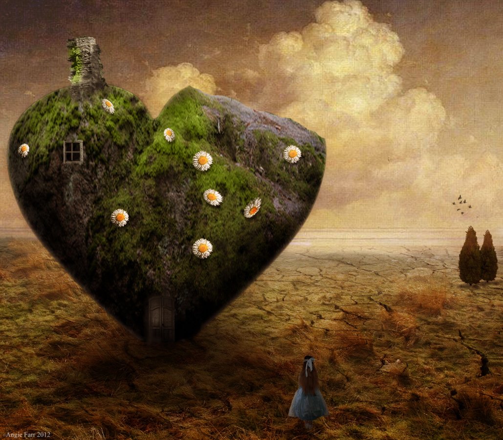 Copy the Daisy stock image and crop only the flower. Resize it and use the Stamp Clone Tool to multiply the daisy throughout the heart surface. To make it look more realistic select daisy flowers and resize them; being the same size will only make them look unrealistic.