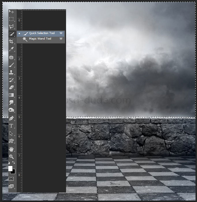 Now delete the sky and use a Quick selection tool and select the sky and press delete to remove it.